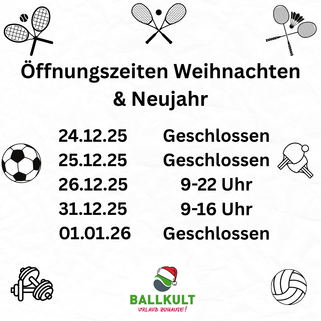 Wir wünschen Euch frohe Weihnachten🎄, erholsame Feiertage und einen gesunden Start ins neue Jahr. 🎆 Möge 2025 für Euch genauso erfolgreich und kraftvoll werden wie das vergangene Jahr. Wir freuen uns darauf, Euch auch im neuen Jahr weiterhin im Ballkult begrüßen zu dürfen!